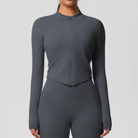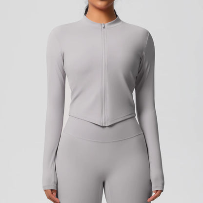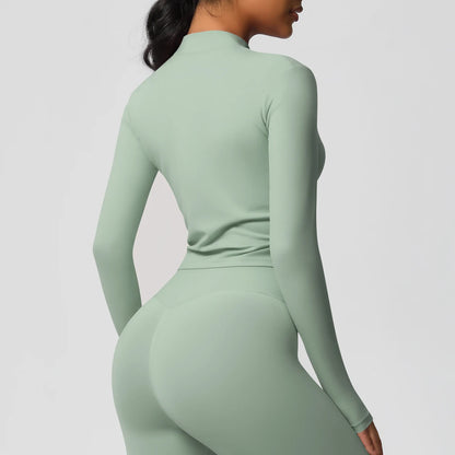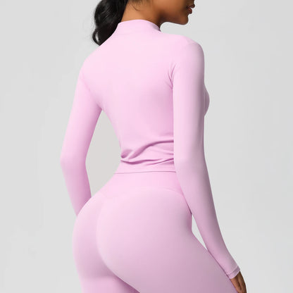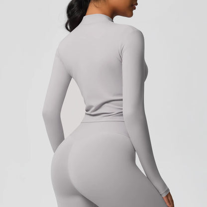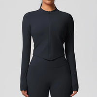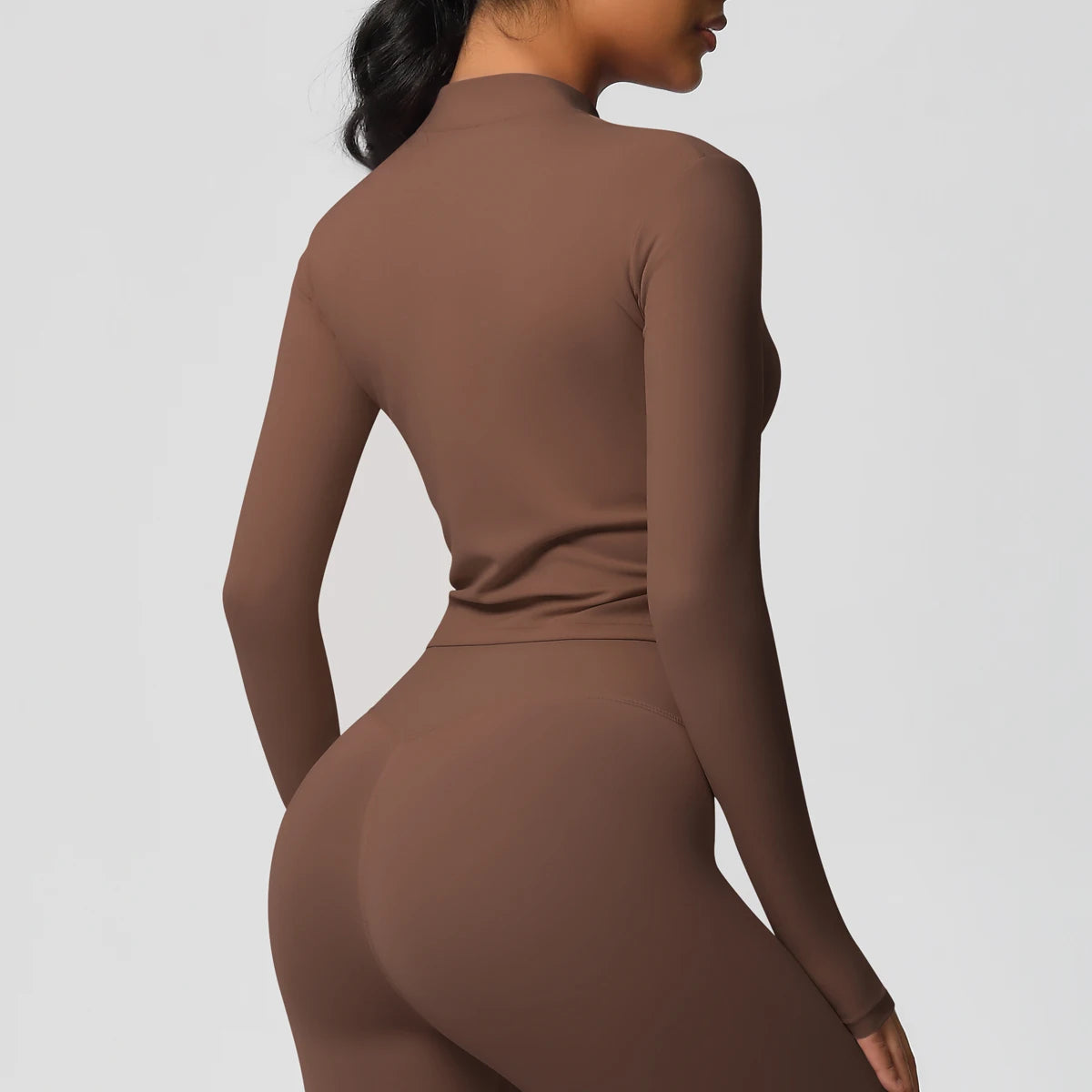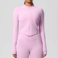 Com modelagem cropped e design ajustado, oferece conforto e liberdade de movimento. Possui zíper frontal, mangas longas e tecido de secagem rápida, ideal para corrida, academia e esportes em geral. Perfeita para quem busca elegância e funcionalidade em uma única peça!